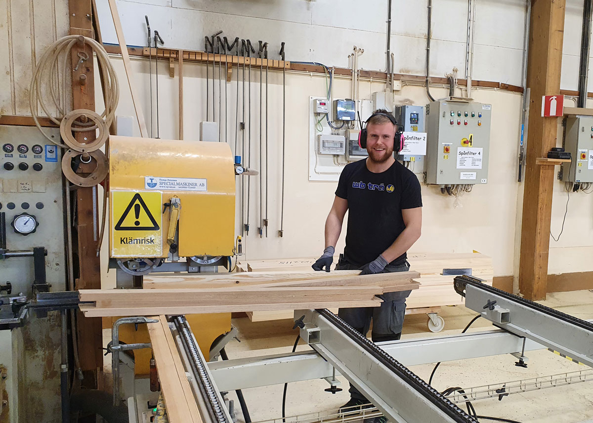 – Det kändes direkt att WB Trä är noga med upplärning och jag fick lära mig maskinen grundligt med kunnig assistans. Nu är jag självgående på hyveln och ska snart även lära mig fräsen och enkeltappen, som är ändstationen för bitarna till karmar. Jag uppskattar verkligen möjligheten att få utveckla mina kunskaper.