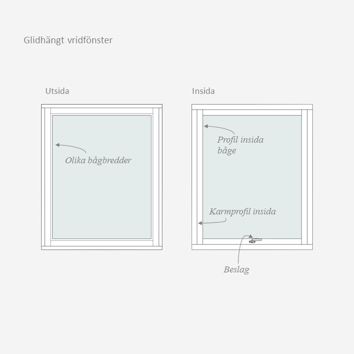 Våra glidhängda vridfönster finns i olika utföranden.