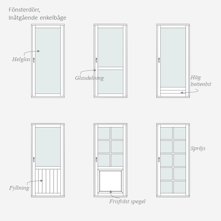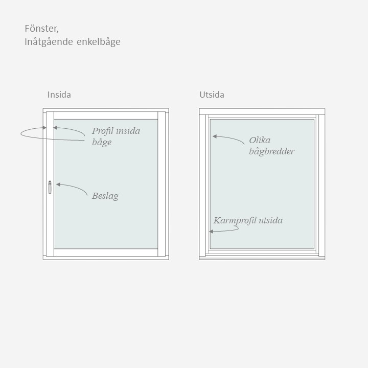 Våra inåtgående enkelbågfönster och fönsterdörrar finns i en mängd olika utföranden. Valet av vilket som passar bäst kan ofta bero på om det är till ett nyproducerat hus eller om profiler ska anpassas till en viss tidsepok.
