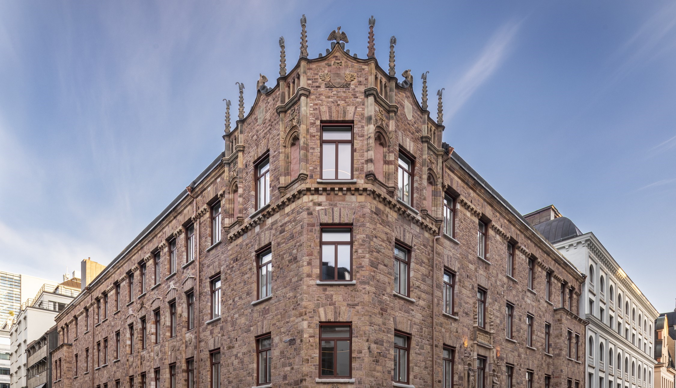 Vildmannen 7 i Bibliotekstan, Stockholm uppfördes mellan åren 1895 och 1897 och köptes av Hufvudstaden 1918. Efter branden i november 2017 fick Stadion Arkitekter i uppdrag att rita den nya byggnaden som skulle uppföras innanför den bevarade fasaden.
