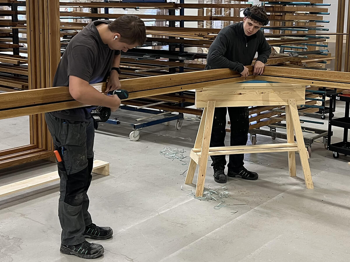 – Eftersom vi redan hade hög beläggning när vi tog hem ordern har det inneburit både projektanställningar och att vi hyrt extra lokaler. Att starta upp ett så här stort och tekniskt krävande projekt har varit en utmaning, men nu känns det extra bra att äntligen få börja leverera och montera, säger Mattias Jonsson, VD på WB Trä.